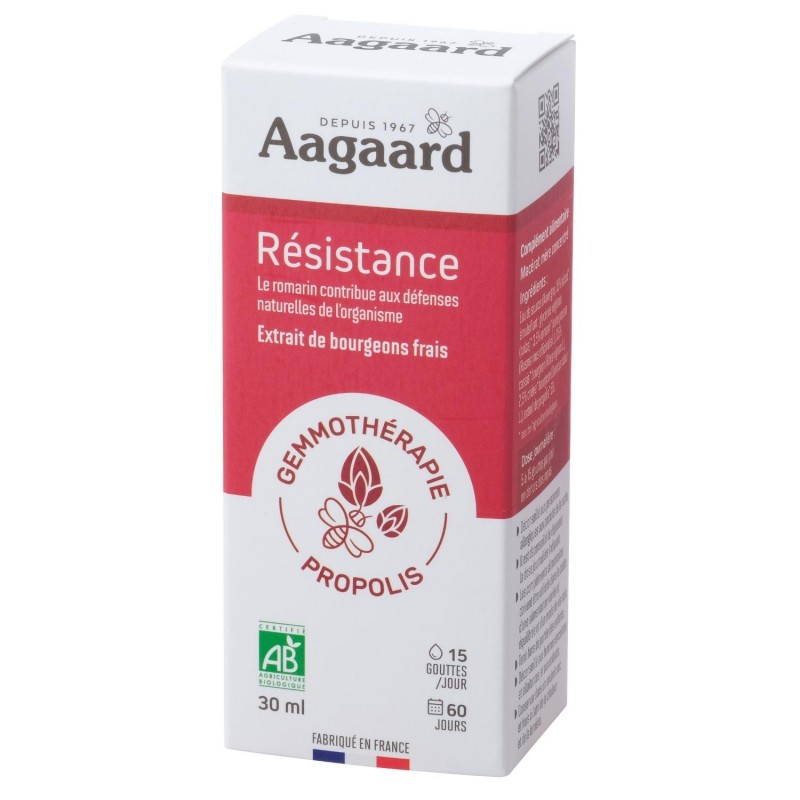 La gemmothérapie de Résistance d'Aagaard est une synergie de gemmothérapie et d'extrait de propolis qui contribue à renforcer l'organisme.
